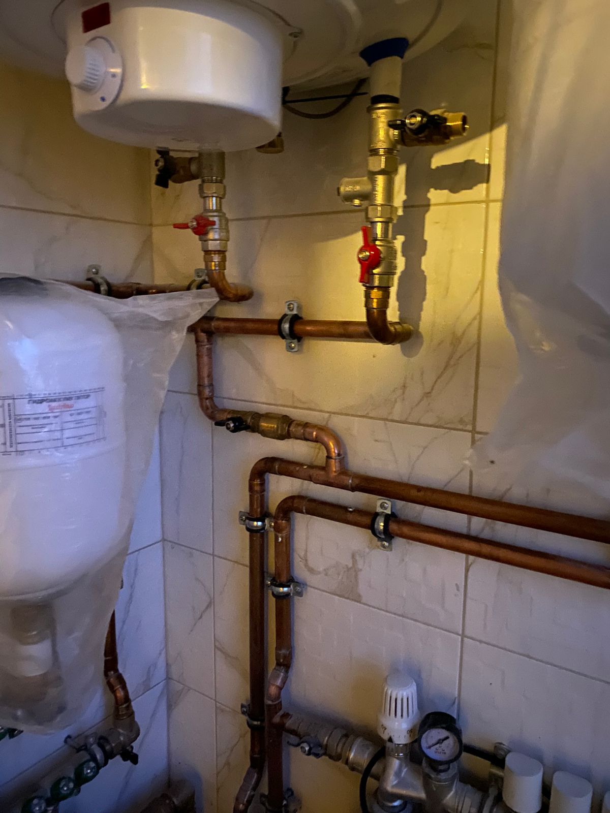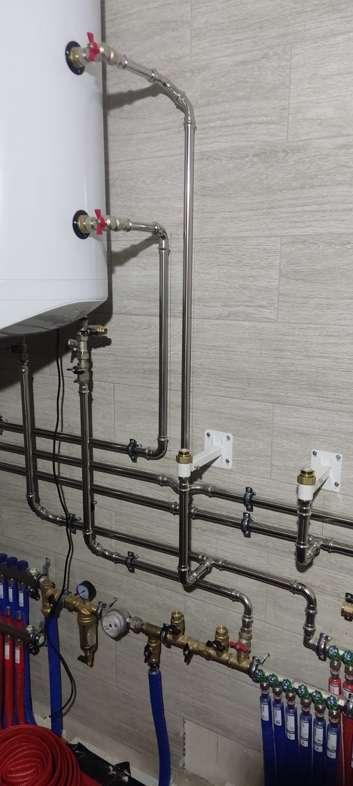 Мы использовали металлопластиковые трубы на пресс-соединениях.