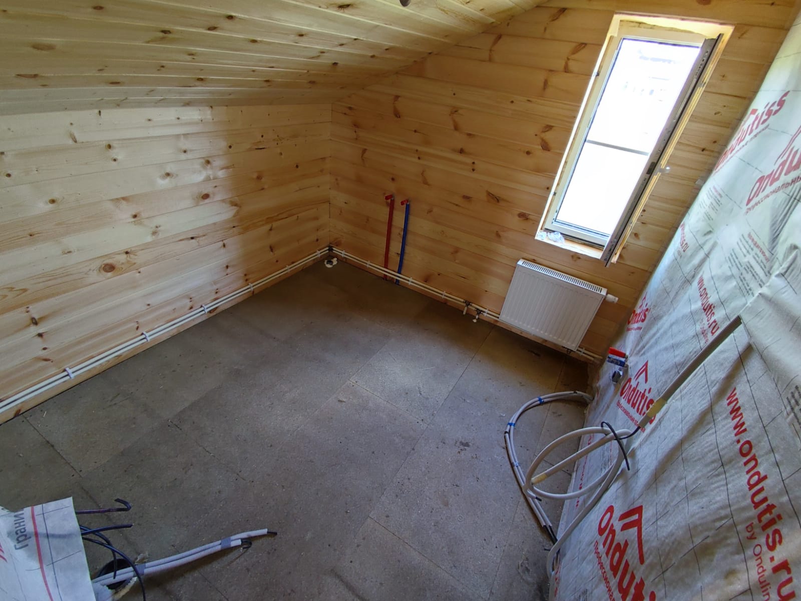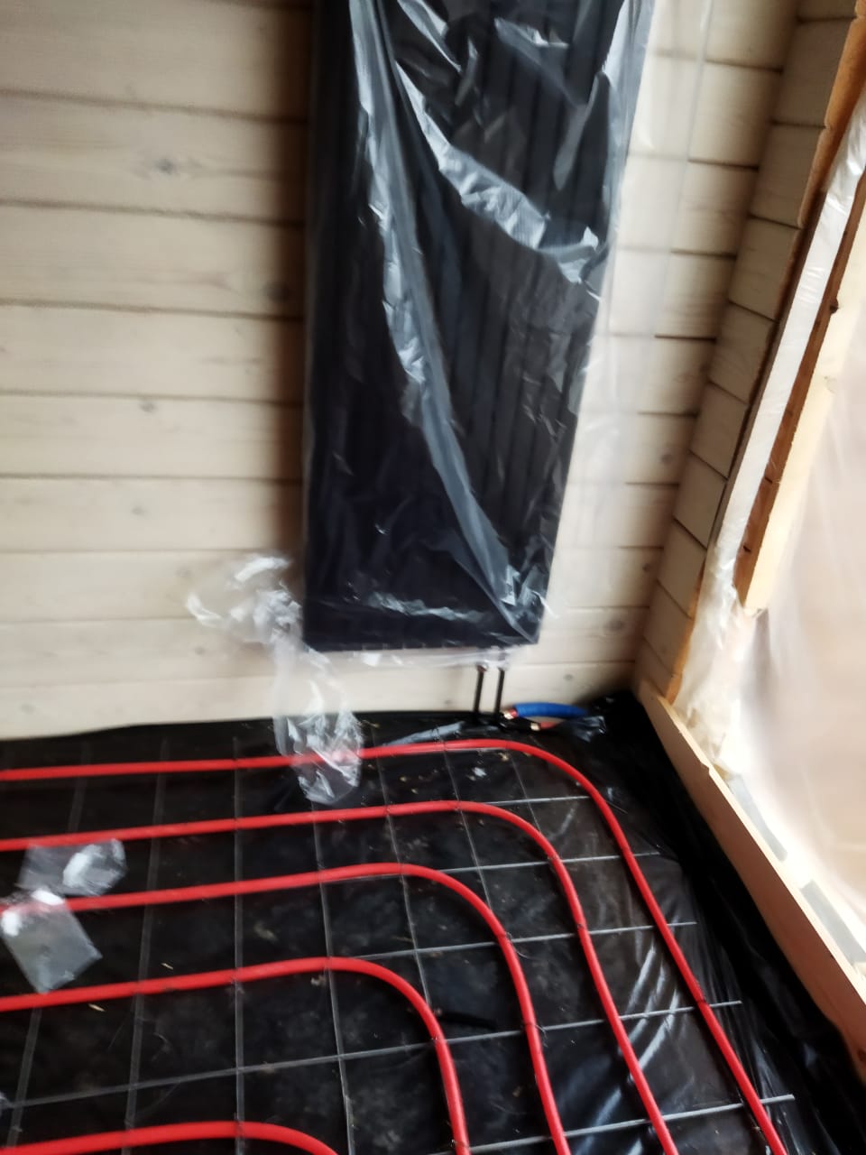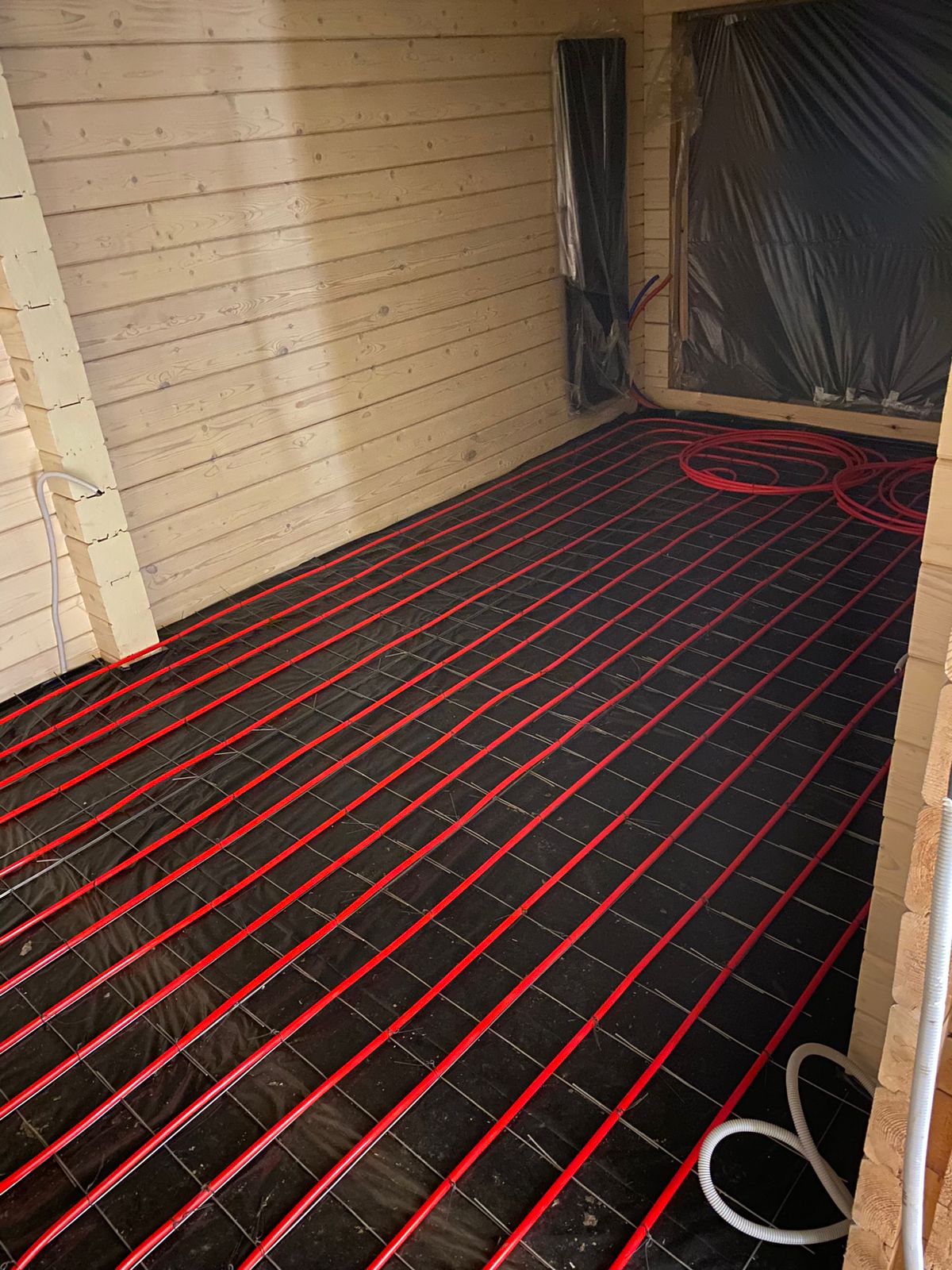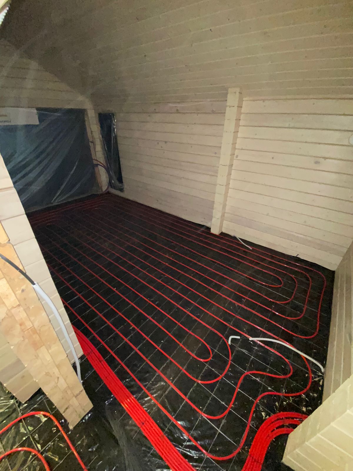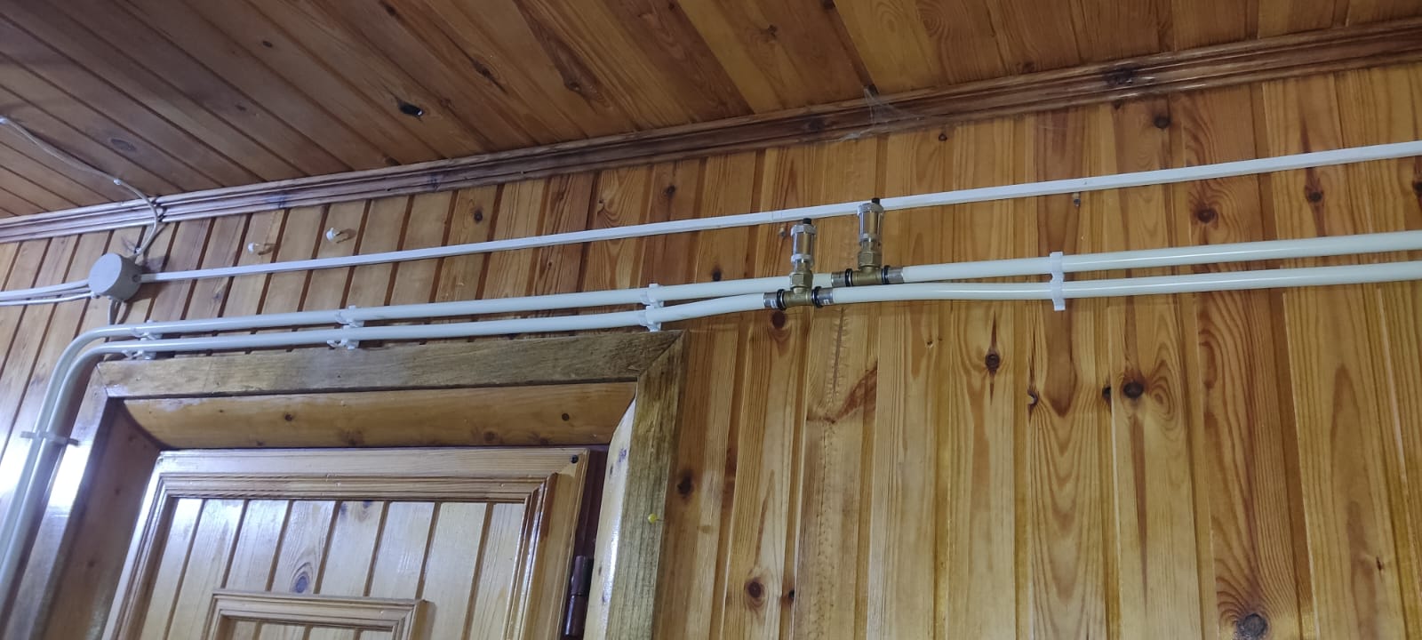 Протянули теплотрассу от котельной в основном доме до гостевого дома-бани, смонтировали радиаторы и трубопроводы, произвели запуск и настройку системы