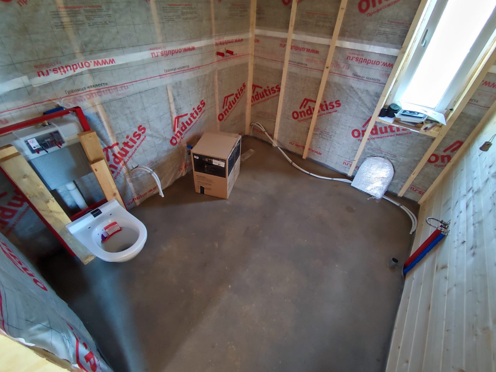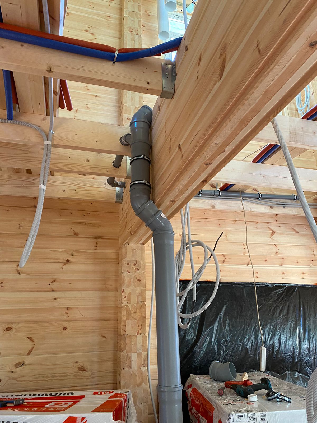 В доме сделали монтаж отопления, водопровода, канализации и электрики.