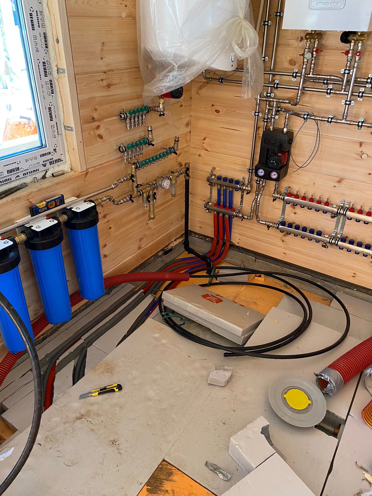 Была выполнена установка бойлера, радиаторов, дизельного котла kiturami, а также станции биоочистки Астра в доме площадью 170 кв.м.