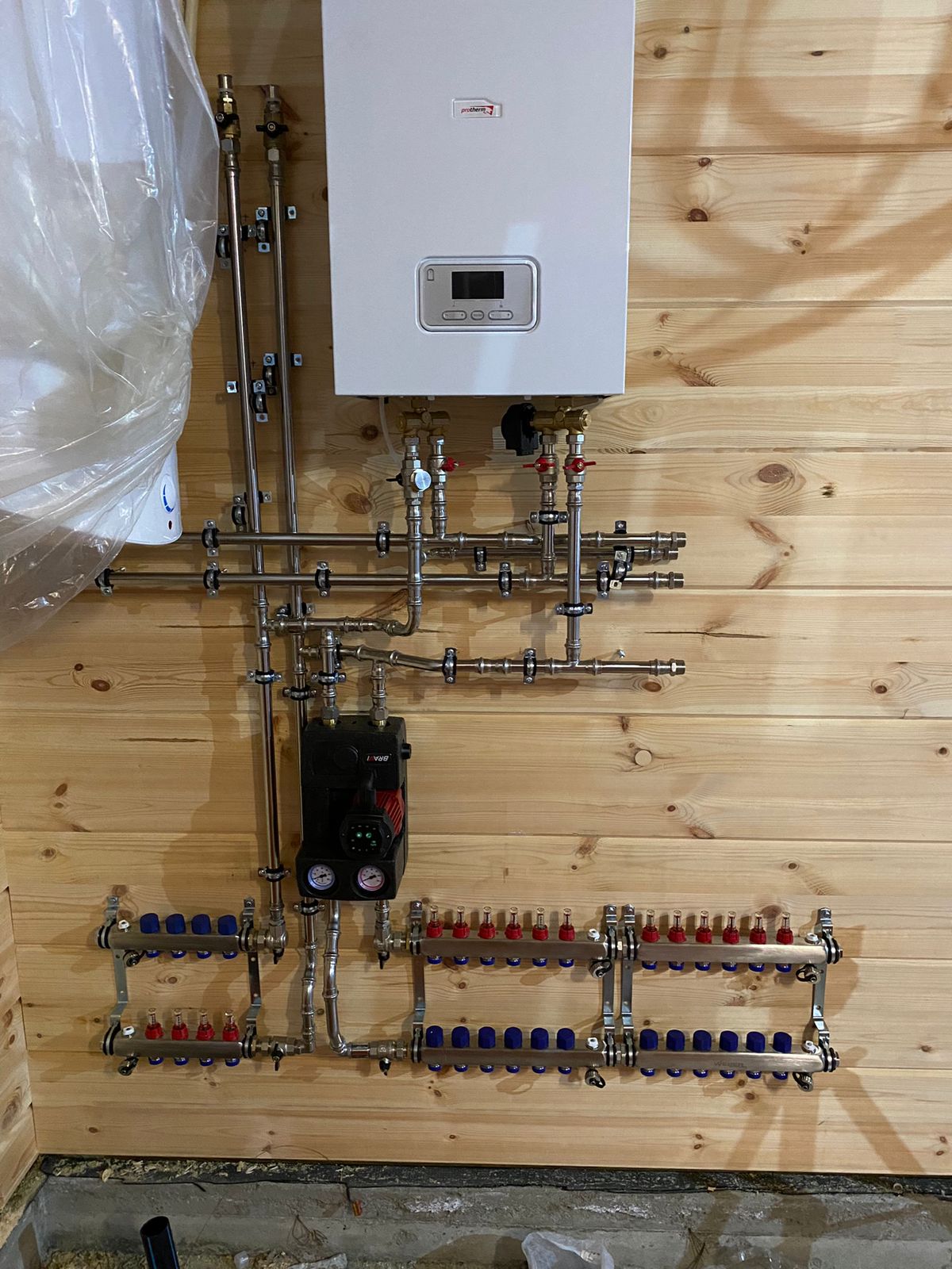 Были исправлены ошибки предыдущей бригады, заменен котел. Выполнена установка газового котла Buderus в доме площадью 97 кв.м.