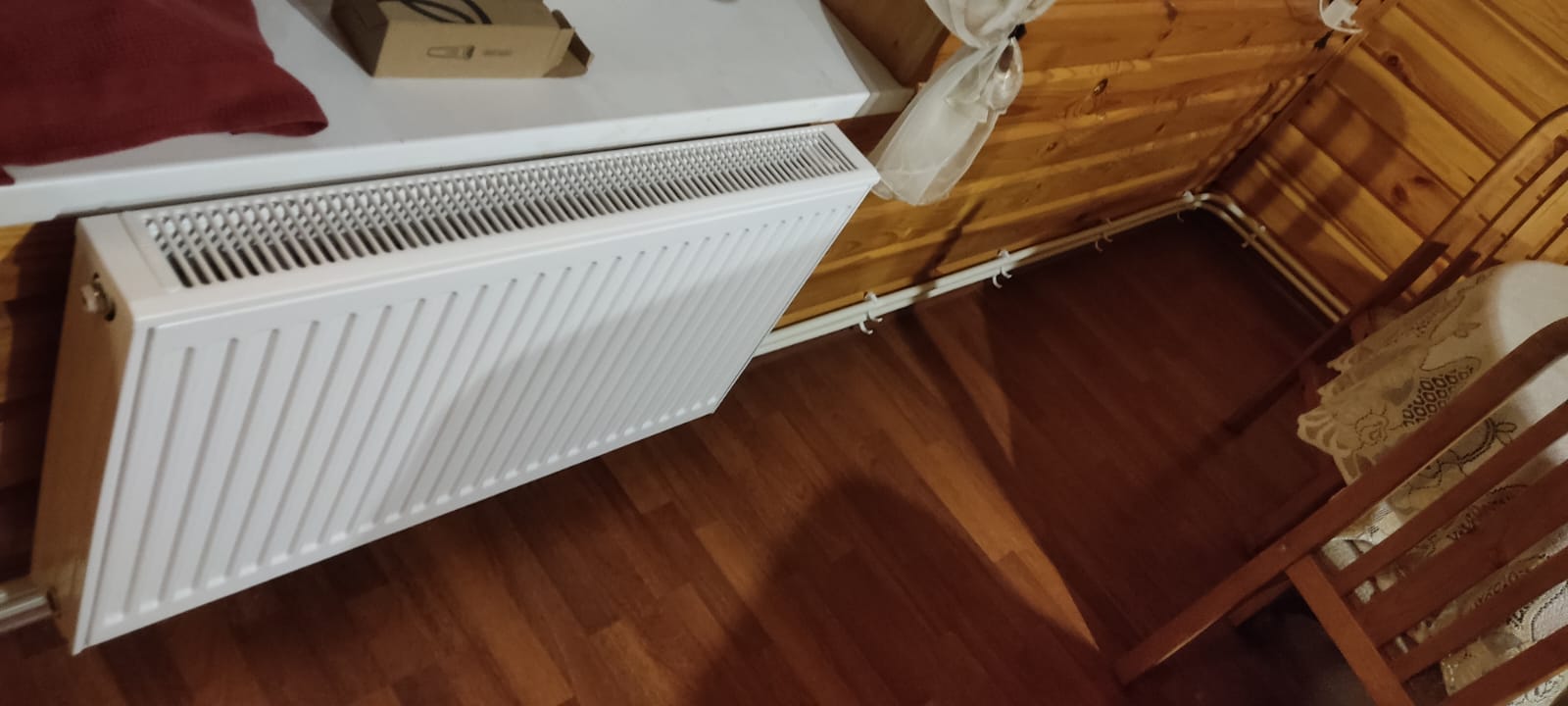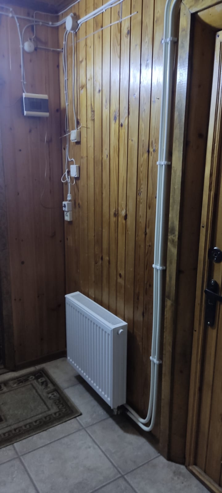 Был выполнен монтаж радиаторов и электрического котла в доме площадью 30 кв.м.