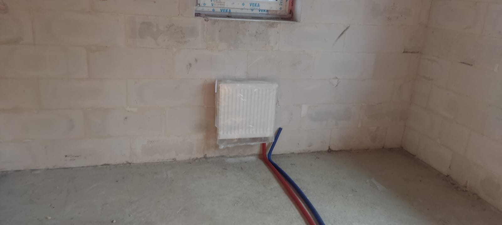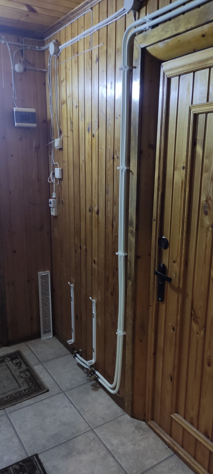 В доме площадью 100 кв. м. была выполнена установка электрокотла Proterm Skat 12, а также панельных радиаторов Buderus и разводка водопровода.