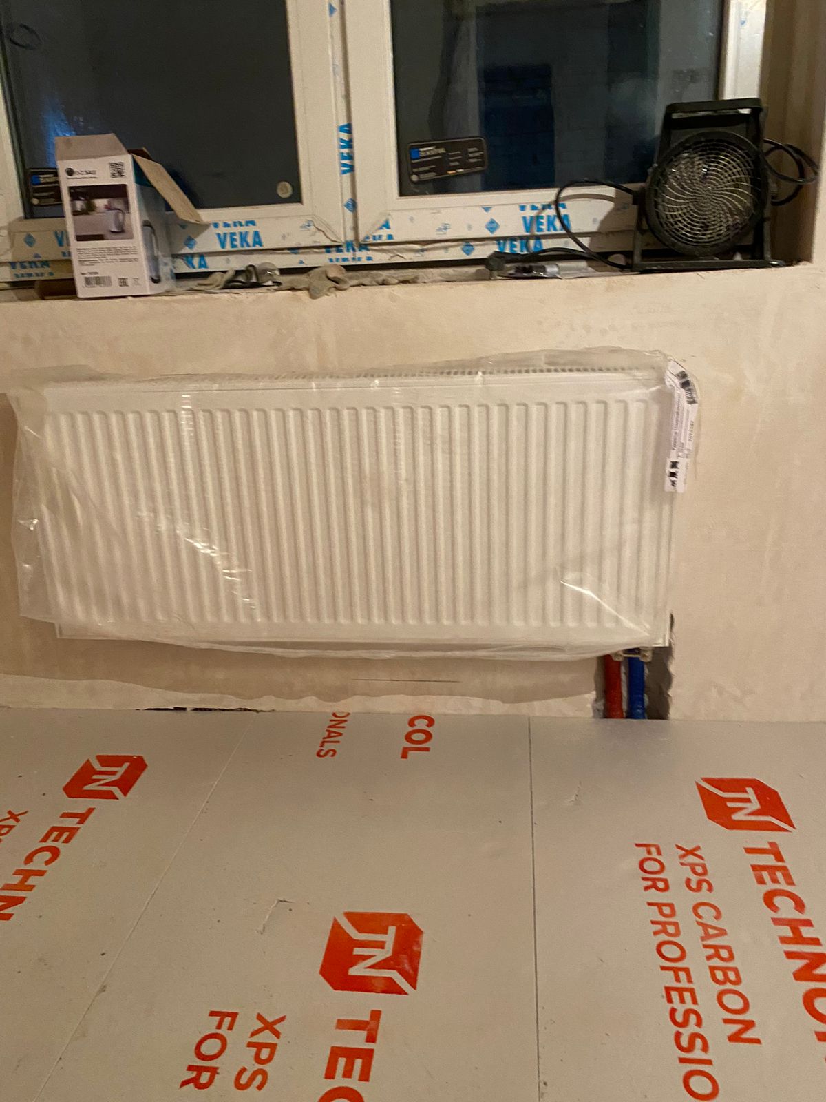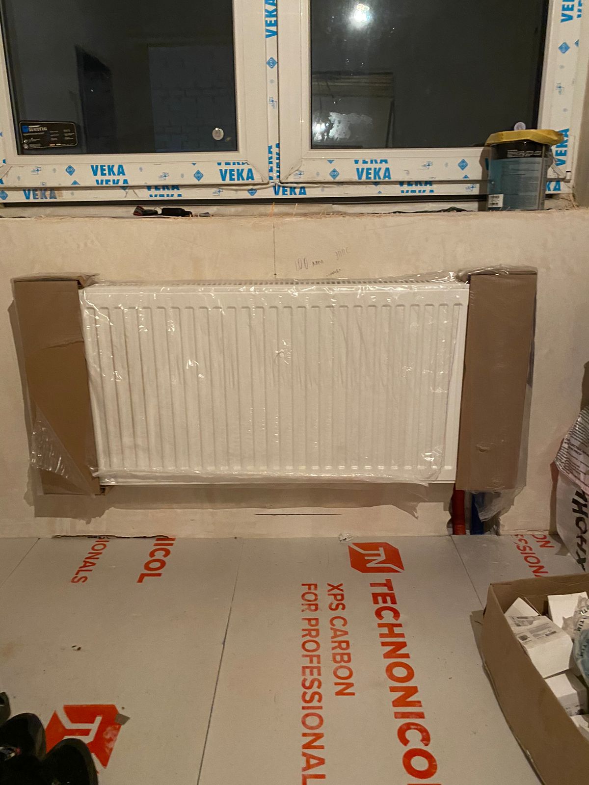 Была выполнена установка газового настенного котла Viesman и радиаторов в доме площадью 110 кв.м.